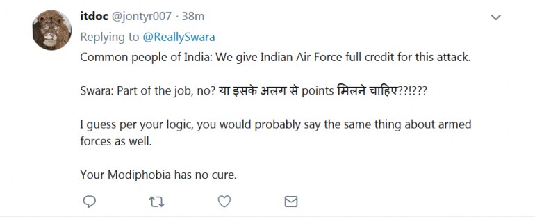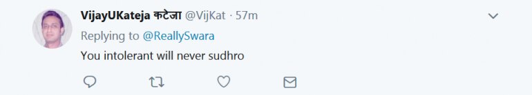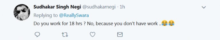 Twitteratti attacked Swara for her "Modiphobia" and savagely trolled her for her tweet. "Do you work for 18 hours? No, because you don't have work," one Twitter user wrote. Take a look at some of the tweets: