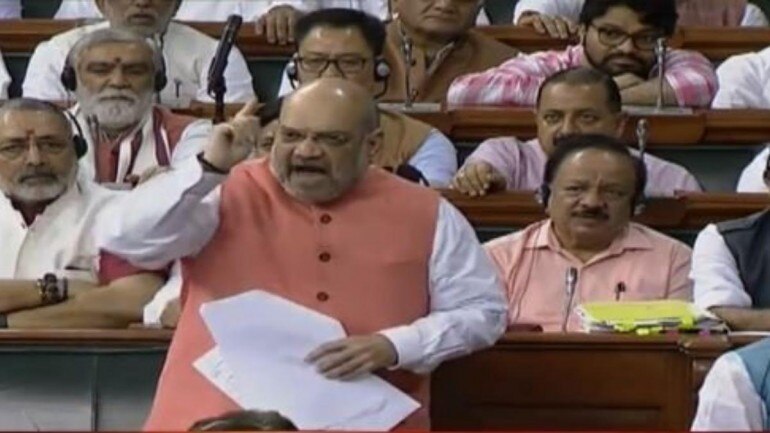 Home Minister Amit Shah speaks in Lok Sabha, takes up the J&K Reorganisation bill and resolution to scrap Article 370 of Constitution. (Photo:ANI)